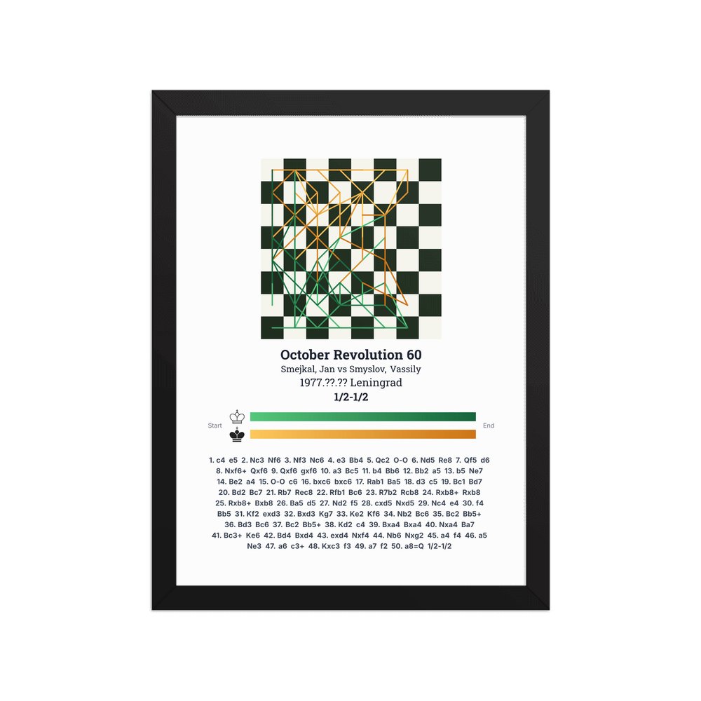 Museum-quality poster on thick, durable matte paper. A sharp, clean look for any chess visualisation.