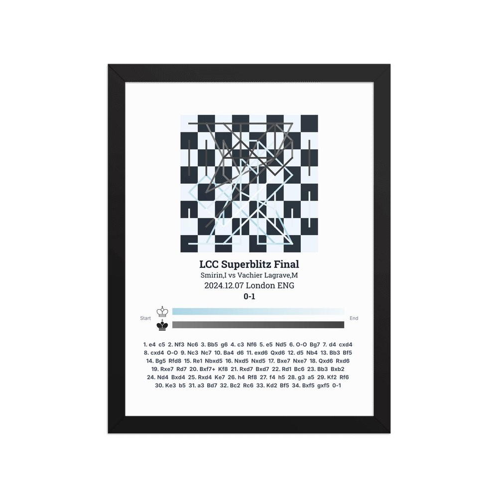 Museum-quality poster on thick, durable matte paper. A sharp, clean look for any chess visualisation.