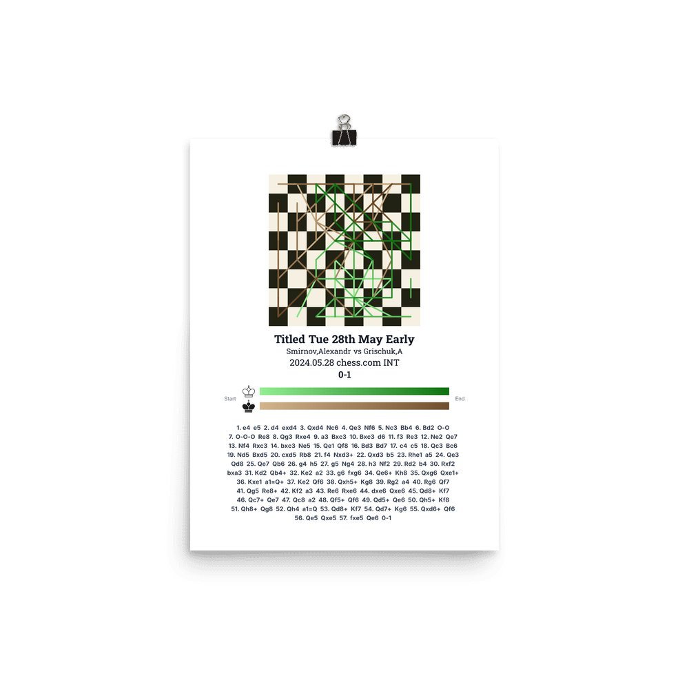 Museum-quality poster on thick, durable matte paper. A sharp, clean look for any chess visualisation.