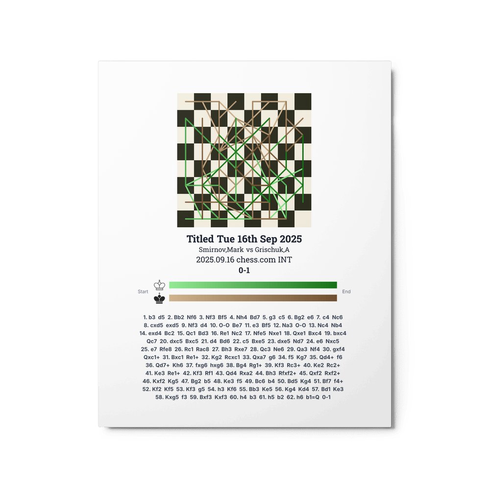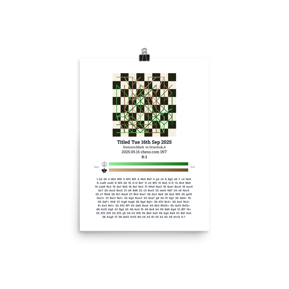 Museum-quality poster on thick, durable matte paper. A sharp, clean look for any chess visualisation.