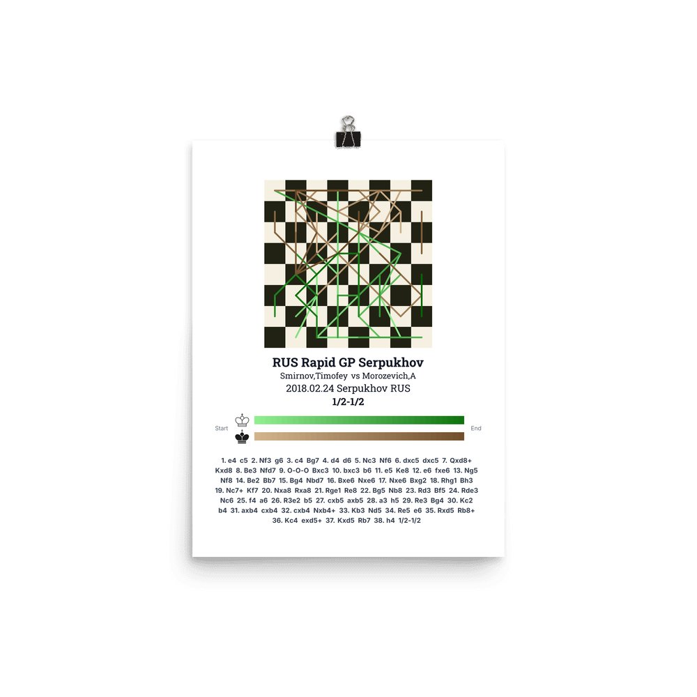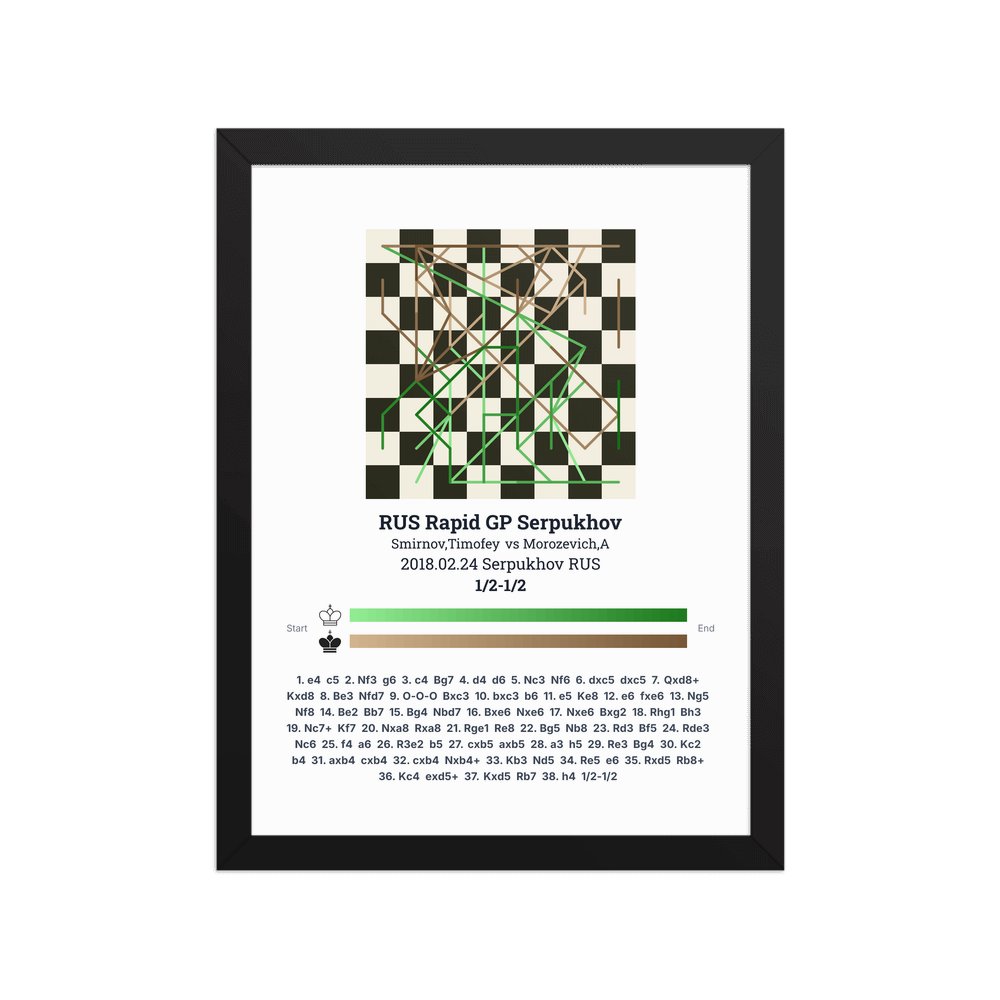 Museum-quality poster on thick, durable matte paper. A sharp, clean look for any chess visualisation.