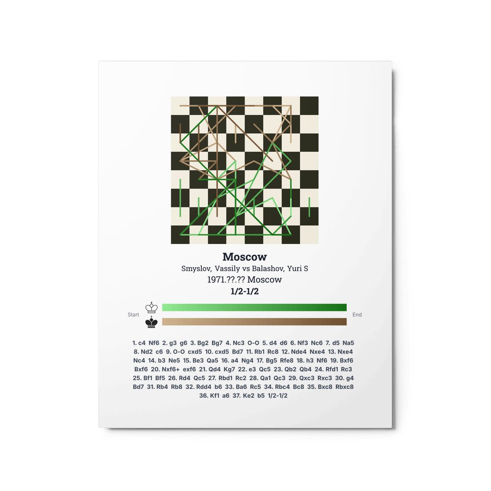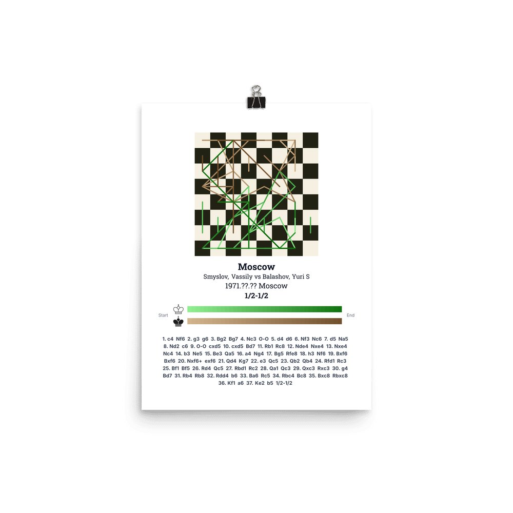 Museum-quality poster on thick, durable matte paper. A sharp, clean look for any chess visualisation.