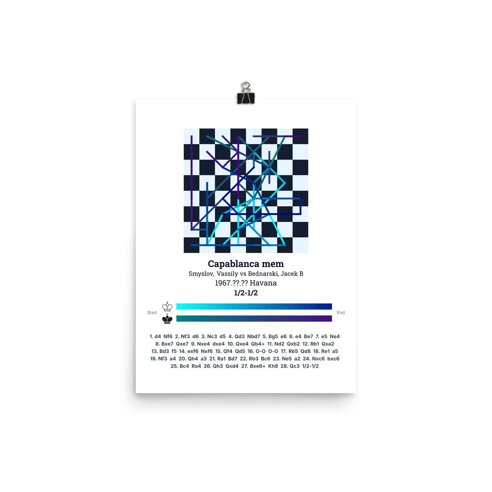 Museum-quality poster on thick, durable matte paper. A sharp, clean look for any chess visualisation.