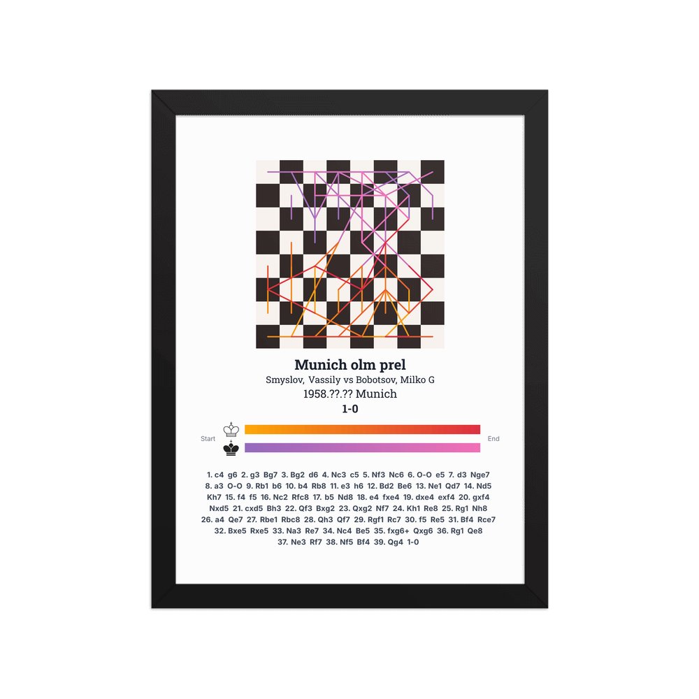 Museum-quality poster on thick, durable matte paper. A sharp, clean look for any chess visualisation.