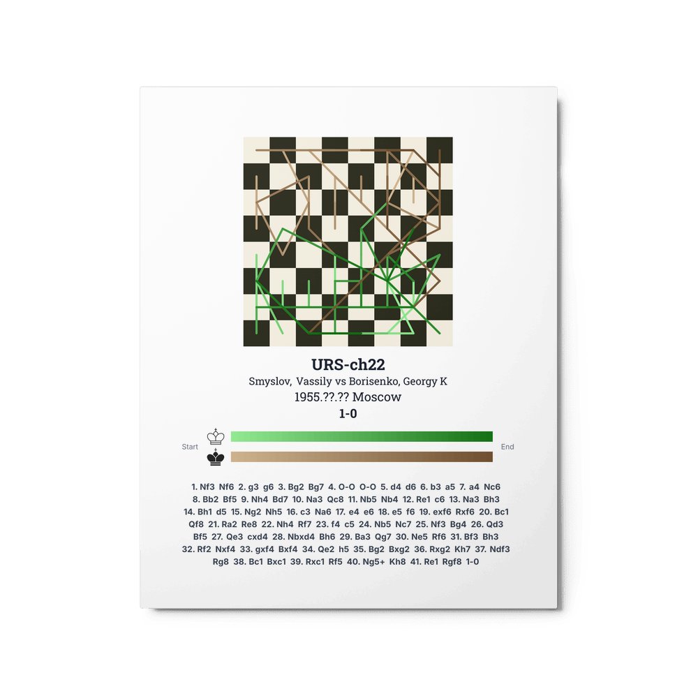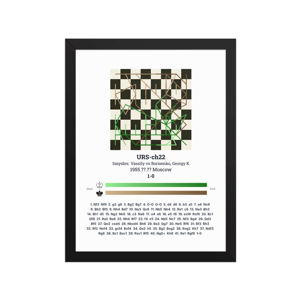 Museum-quality poster on thick, durable matte paper. A sharp, clean look for any chess visualisation.