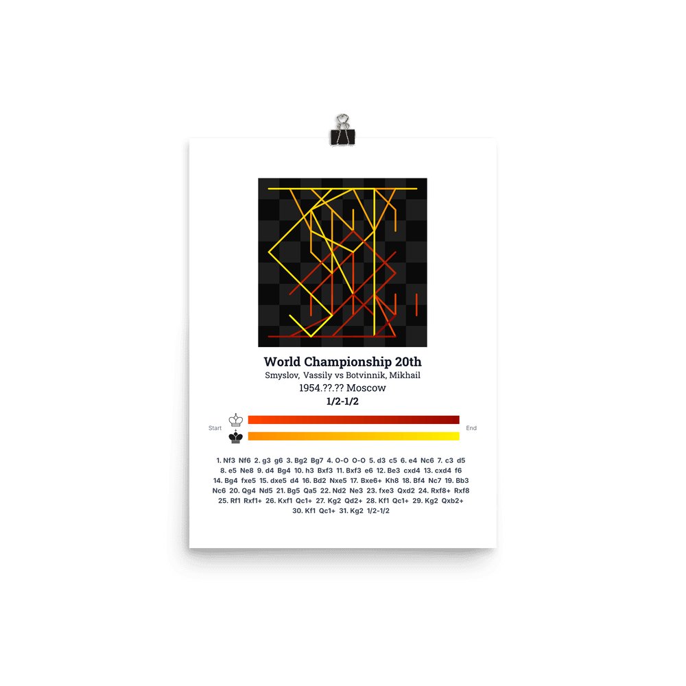 Museum-quality poster on thick, durable matte paper. A sharp, clean look for any chess visualisation.