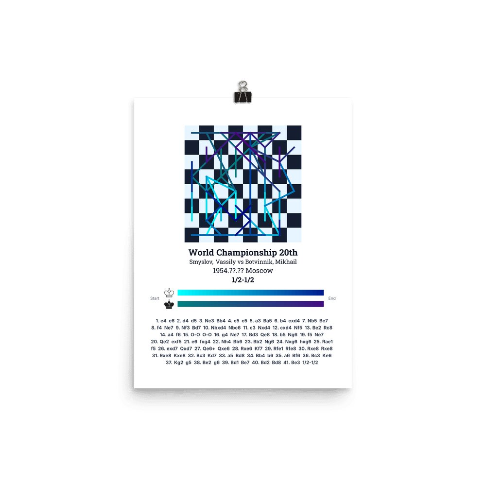 Museum-quality poster on thick, durable matte paper. A sharp, clean look for any chess visualisation.