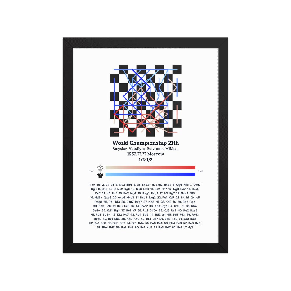 Museum-quality poster on thick, durable matte paper. A sharp, clean look for any chess visualisation.
