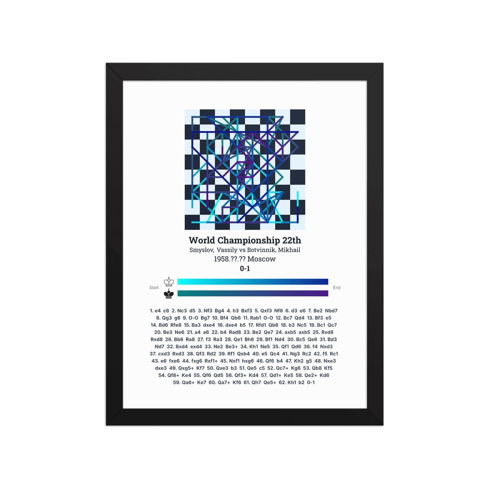 Museum-quality poster on thick, durable matte paper. A sharp, clean look for any chess visualisation.