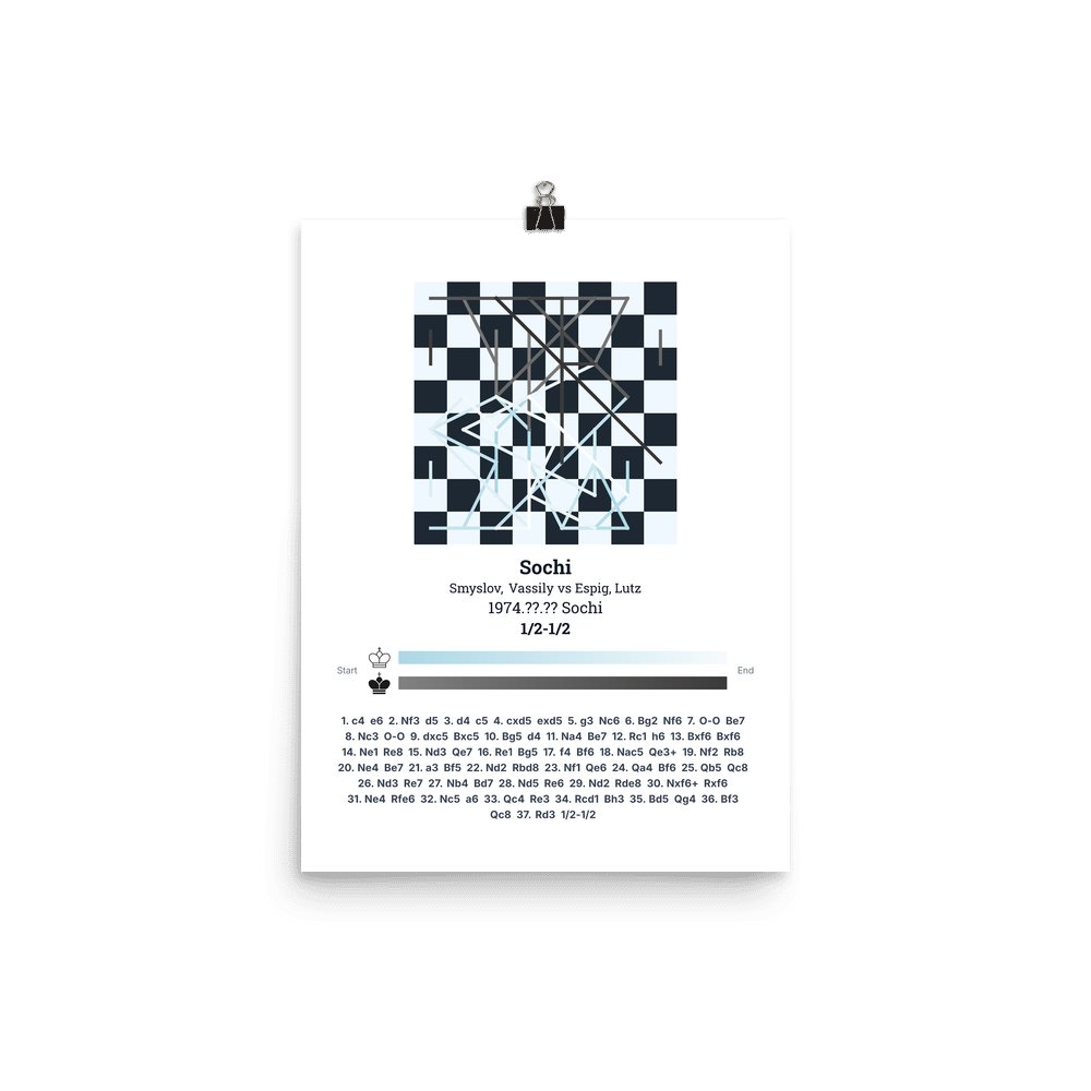 Museum-quality poster on thick, durable matte paper. A sharp, clean look for any chess visualisation.