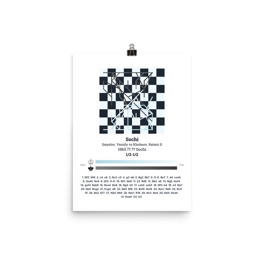 Museum-quality poster on thick, durable matte paper. A sharp, clean look for any chess visualisation.