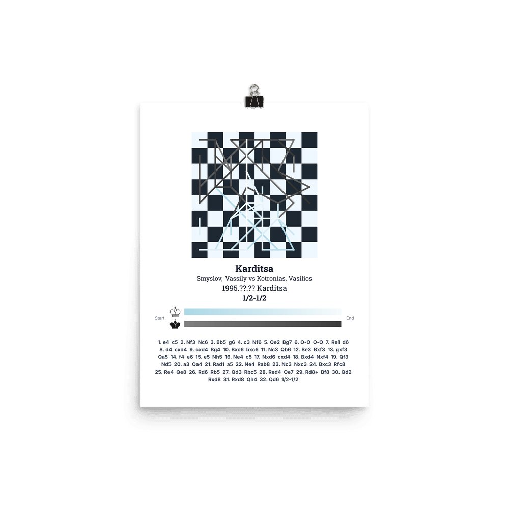 Museum-quality poster on thick, durable matte paper. A sharp, clean look for any chess visualisation.