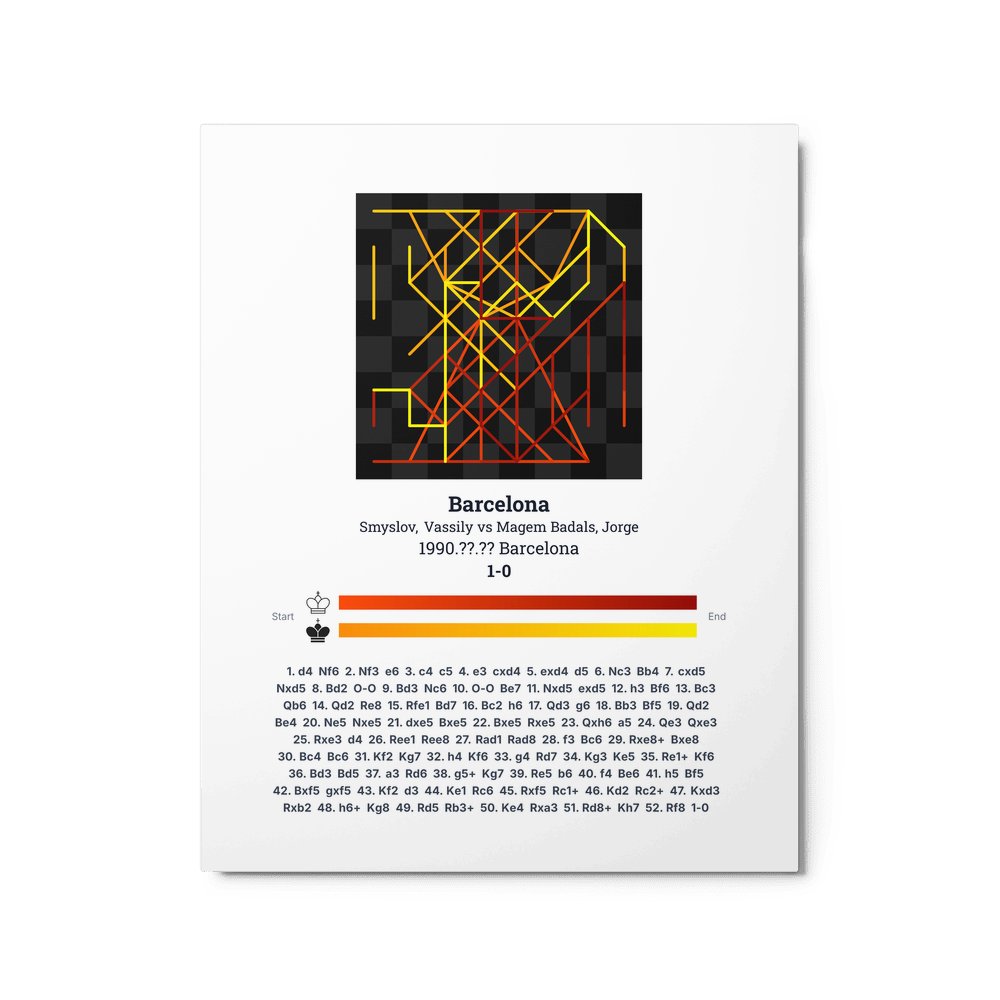 Museum-quality poster on thick, durable matte paper. A sharp, clean look for any chess visualisation.