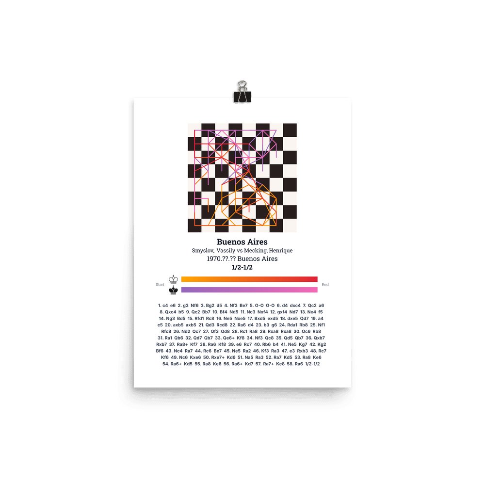 Museum-quality poster on thick, durable matte paper. A sharp, clean look for any chess visualisation.