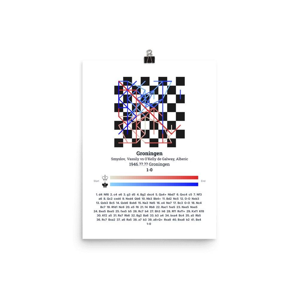 Museum-quality poster on thick, durable matte paper. A sharp, clean look for any chess visualisation.