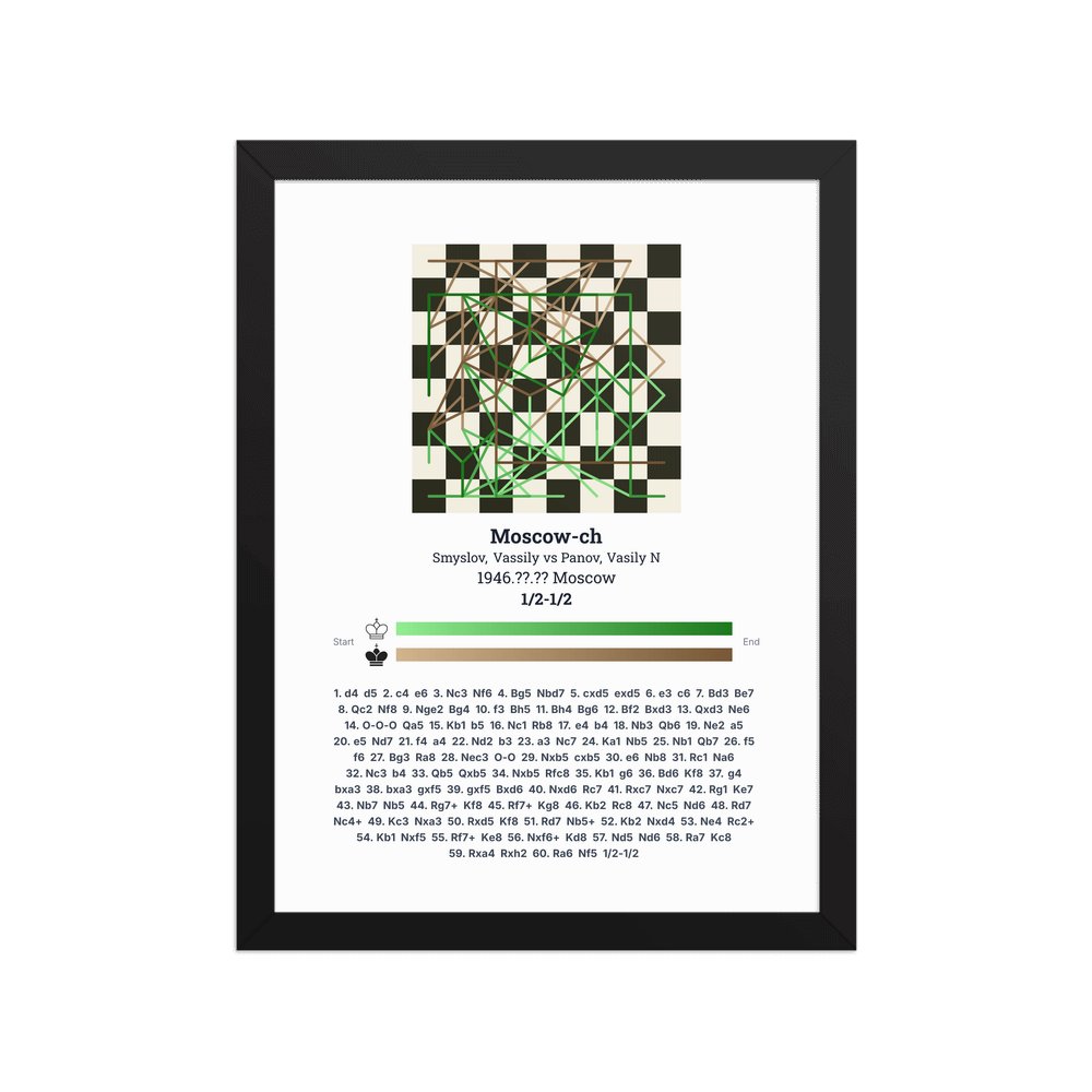 Museum-quality poster on thick, durable matte paper. A sharp, clean look for any chess visualisation.