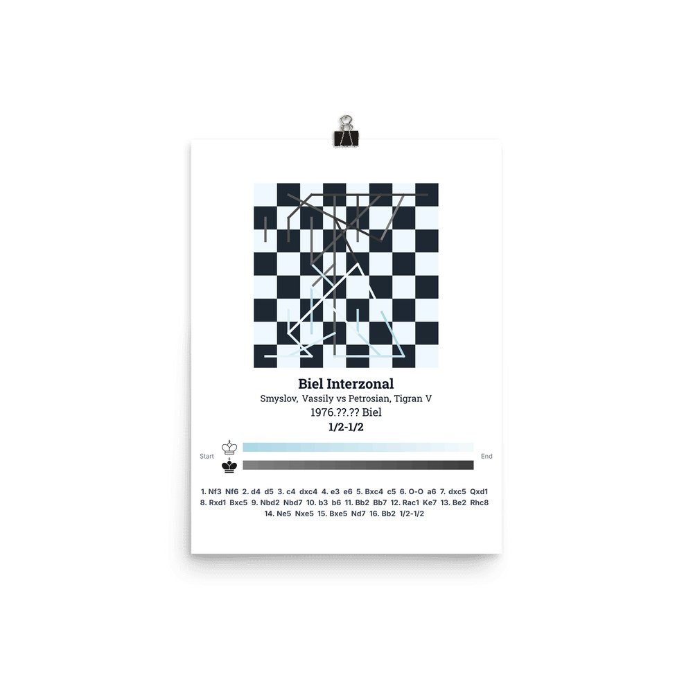Museum-quality poster on thick, durable matte paper. A sharp, clean look for any chess visualisation.