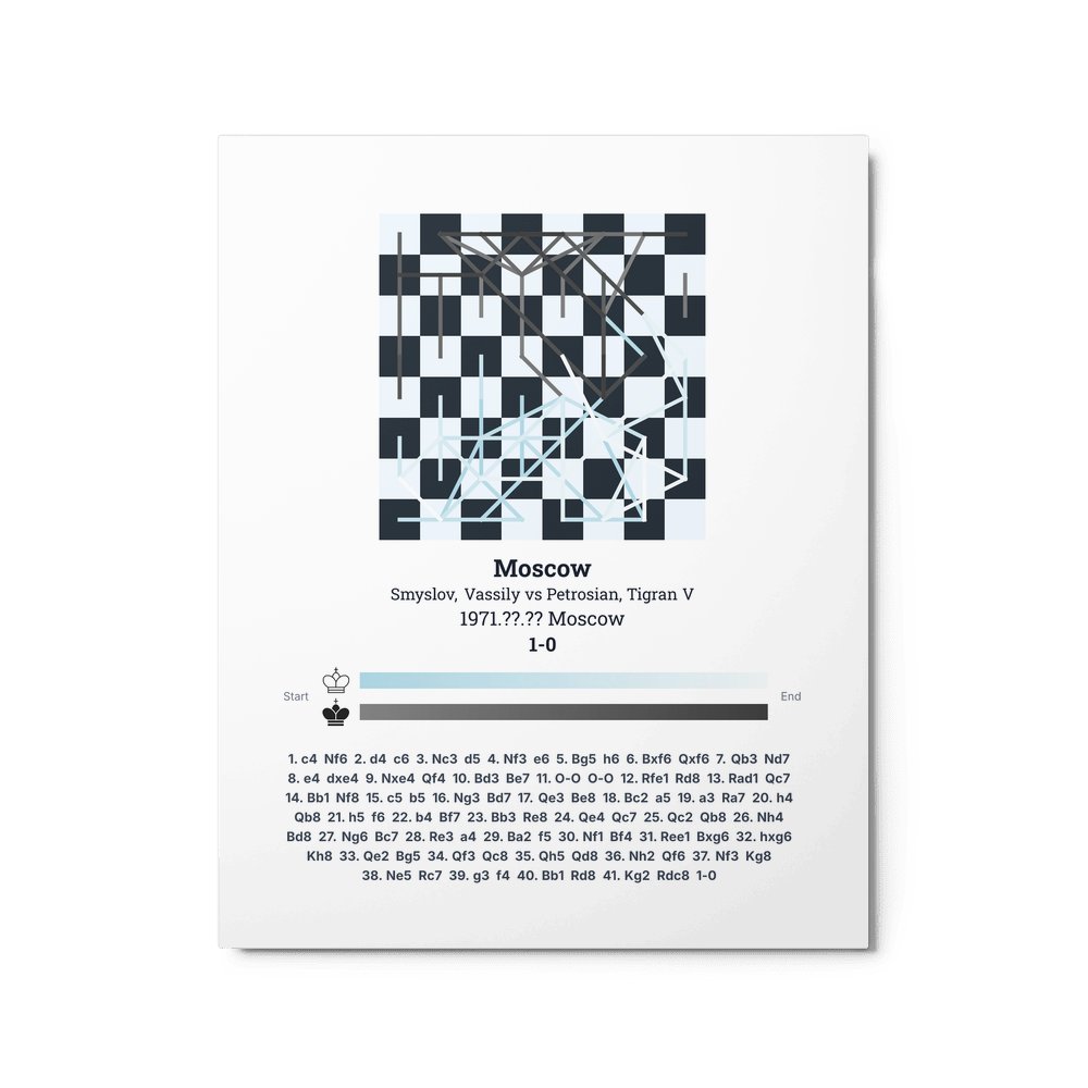 Museum-quality poster on thick, durable matte paper. A sharp, clean look for any chess visualisation.
