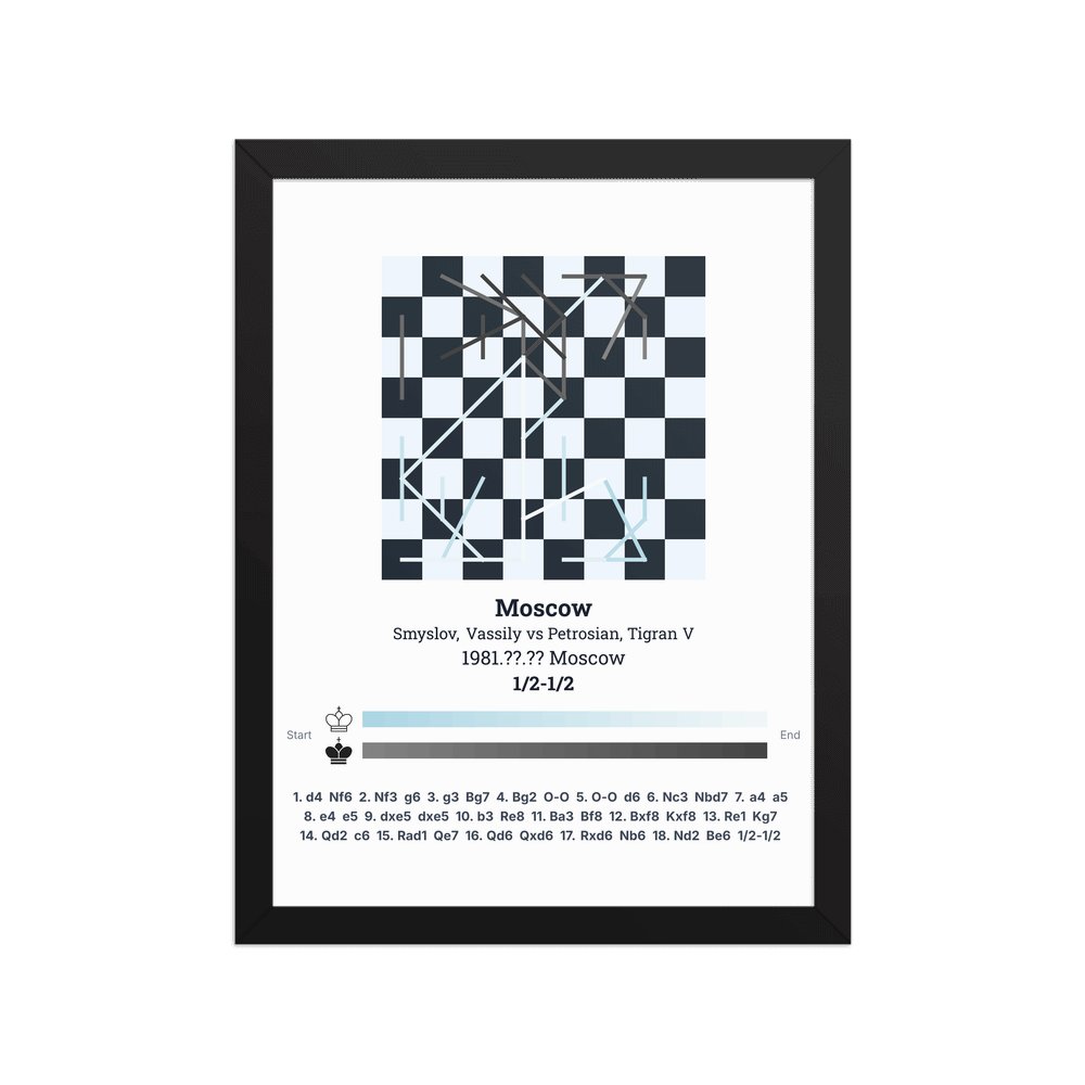 Museum-quality poster on thick, durable matte paper. A sharp, clean look for any chess visualisation.