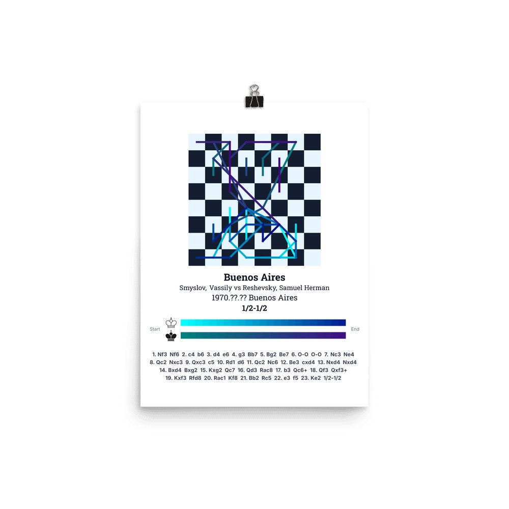 Museum-quality poster on thick, durable matte paper. A sharp, clean look for any chess visualisation.