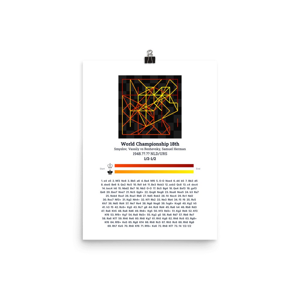 Museum-quality poster on thick, durable matte paper. A sharp, clean look for any chess visualisation.
