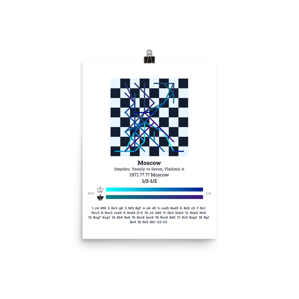 Museum-quality poster on thick, durable matte paper. A sharp, clean look for any chess visualisation.