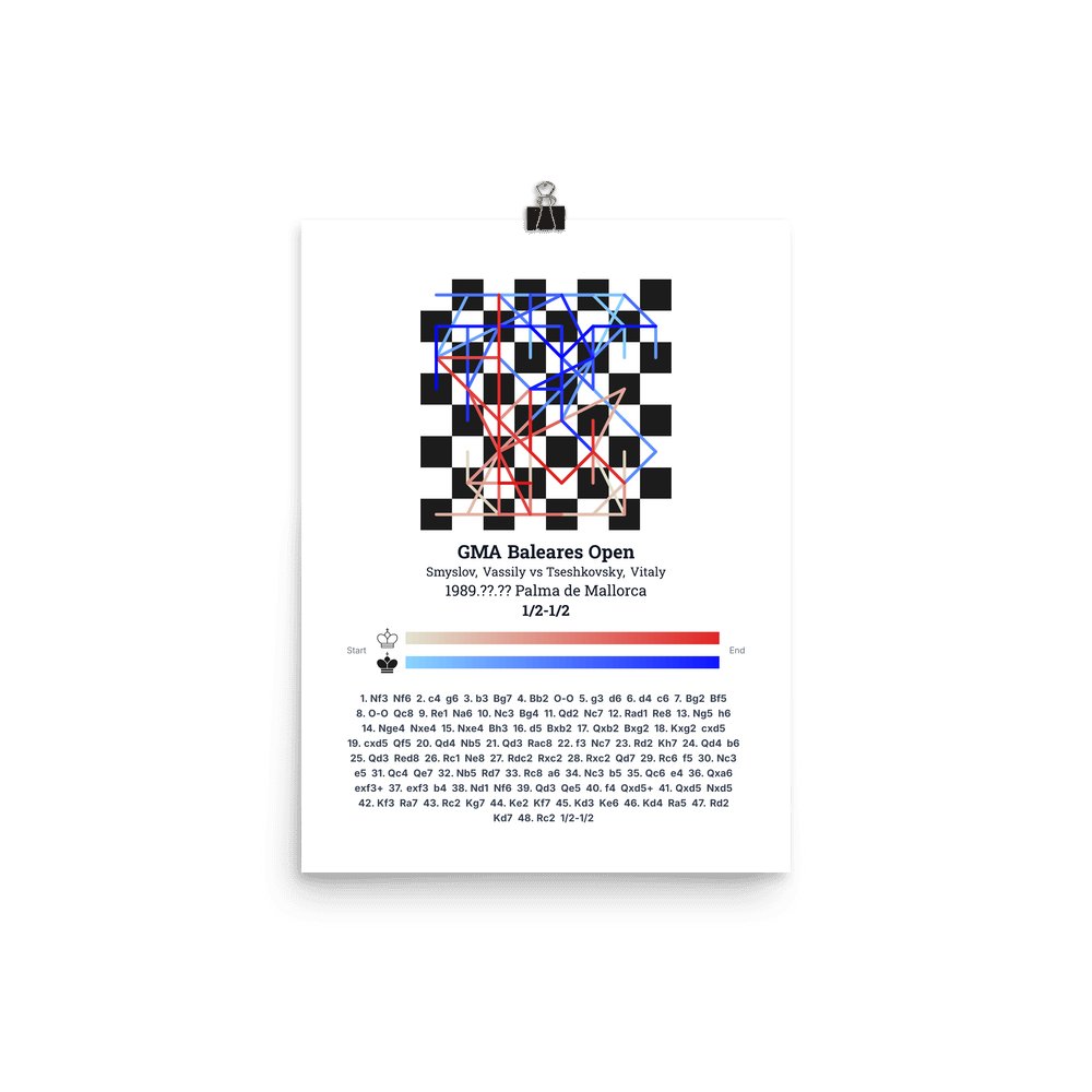 Museum-quality poster on thick, durable matte paper. A sharp, clean look for any chess visualisation.