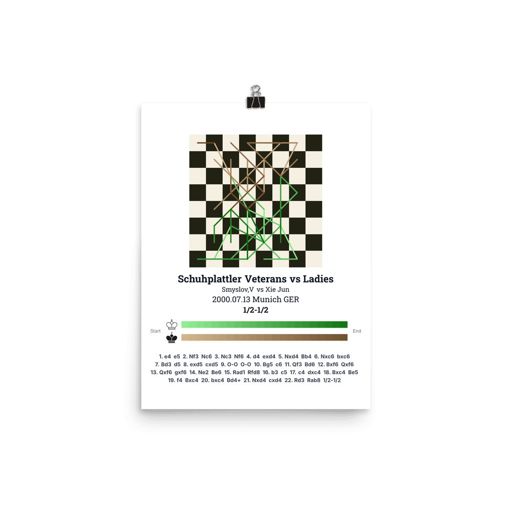 Museum-quality poster on thick, durable matte paper. A sharp, clean look for any chess visualisation.
