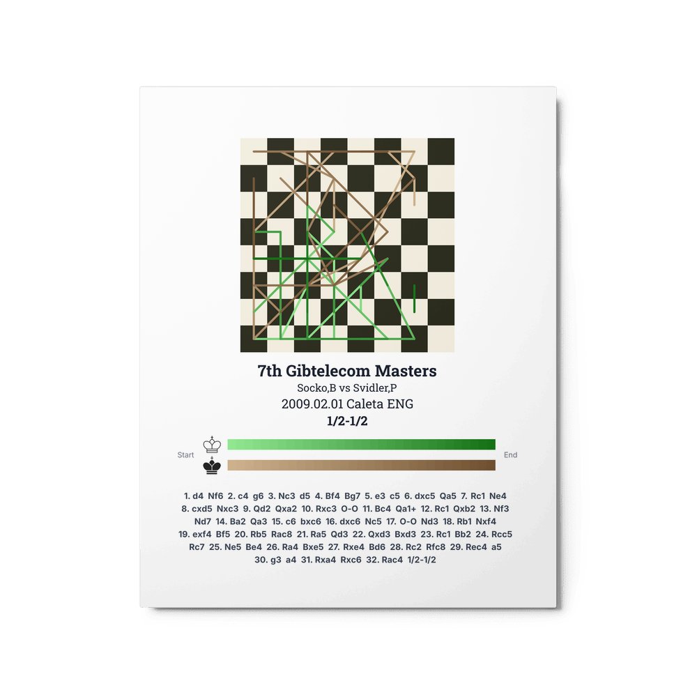 Museum-quality poster on thick, durable matte paper. A sharp, clean look for any chess visualisation.