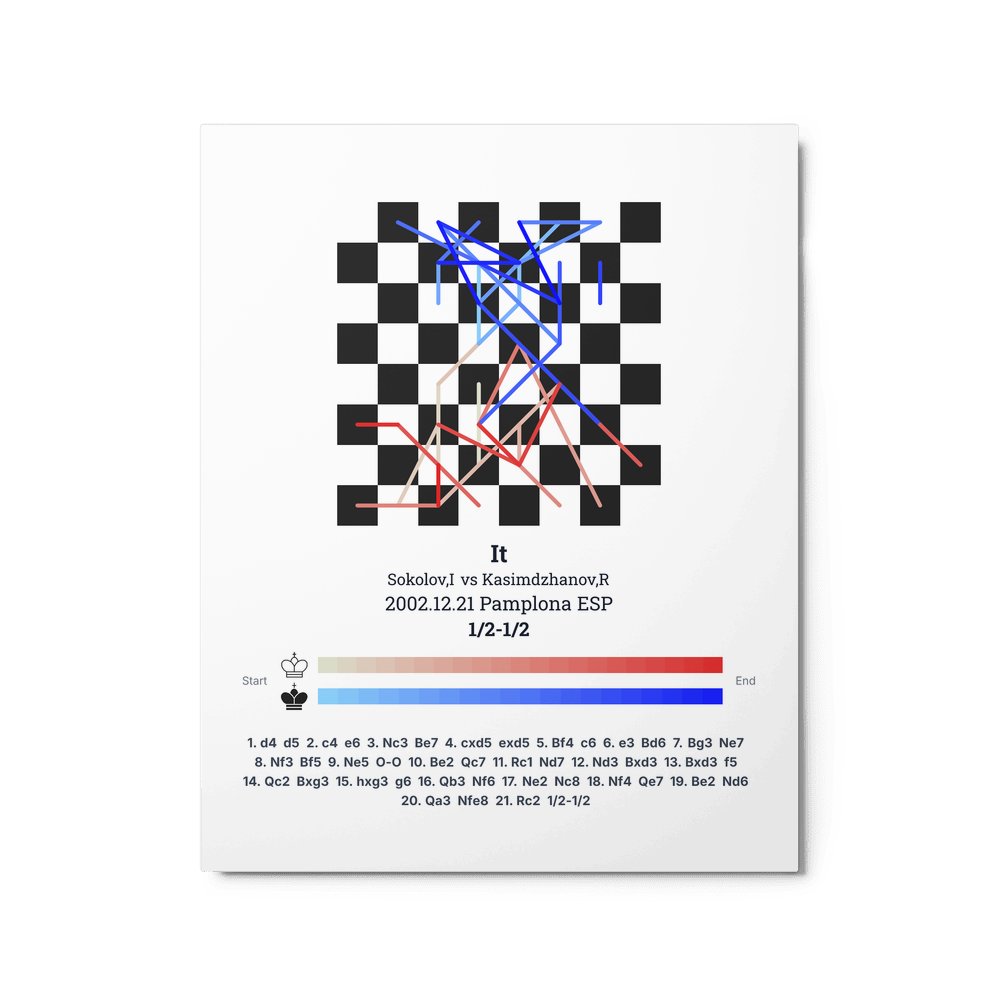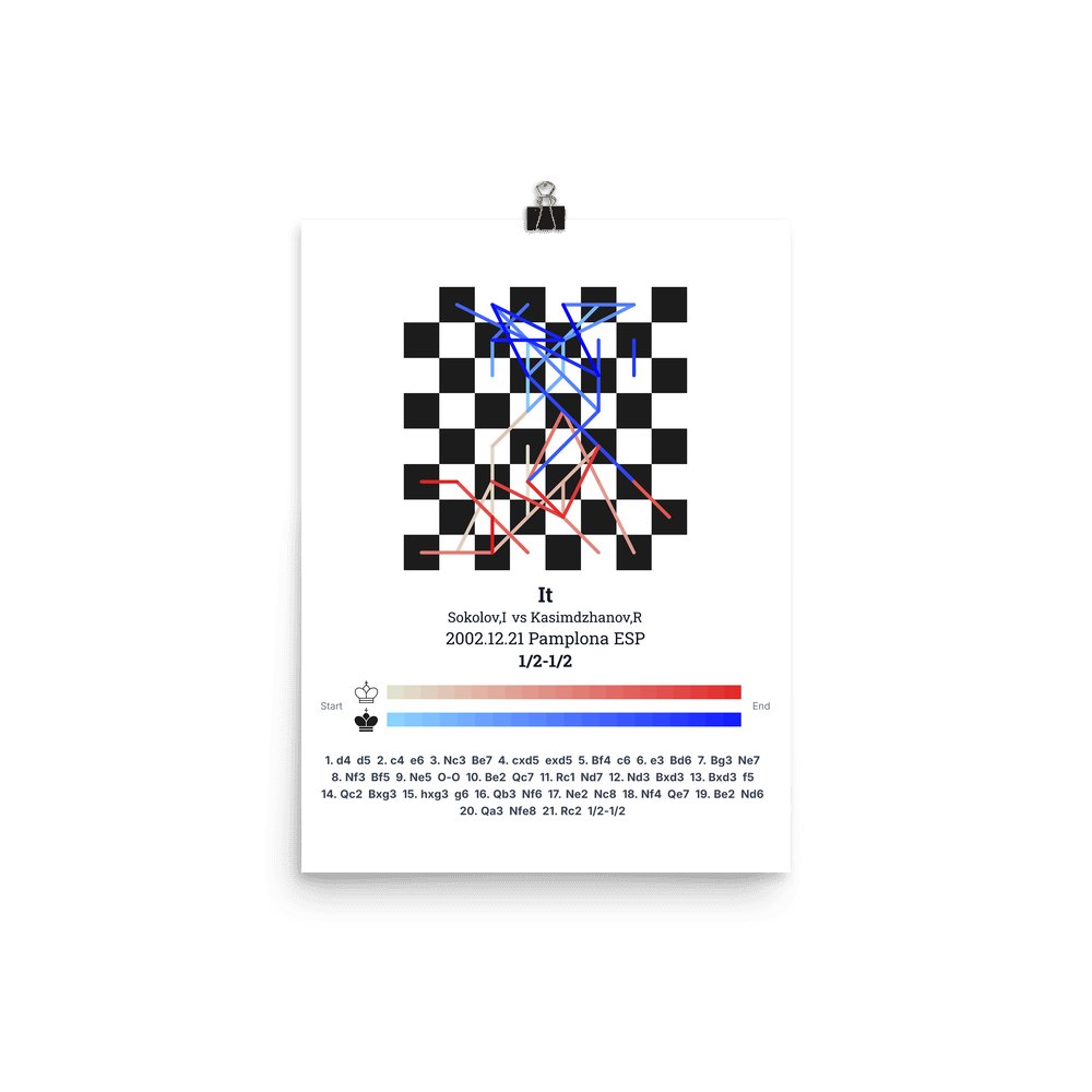 Museum-quality poster on thick, durable matte paper. A sharp, clean look for any chess visualisation.