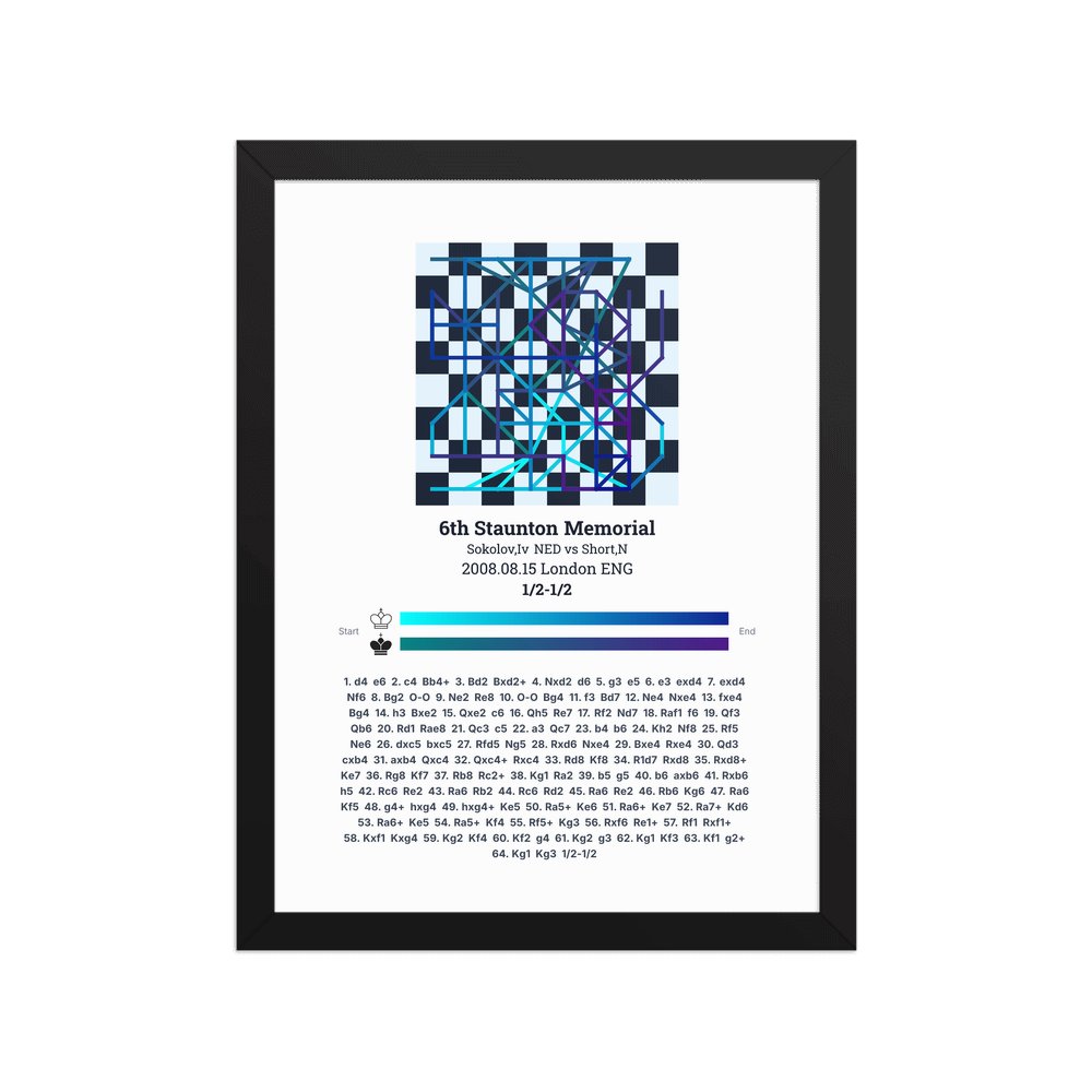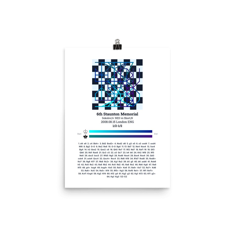 Museum-quality poster on thick, durable matte paper. A sharp, clean look for any chess visualisation.