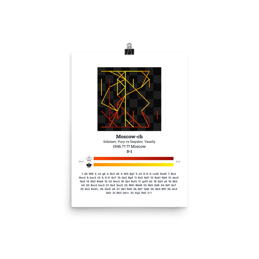 Museum-quality poster on thick, durable matte paper. A sharp, clean look for any chess visualisation.