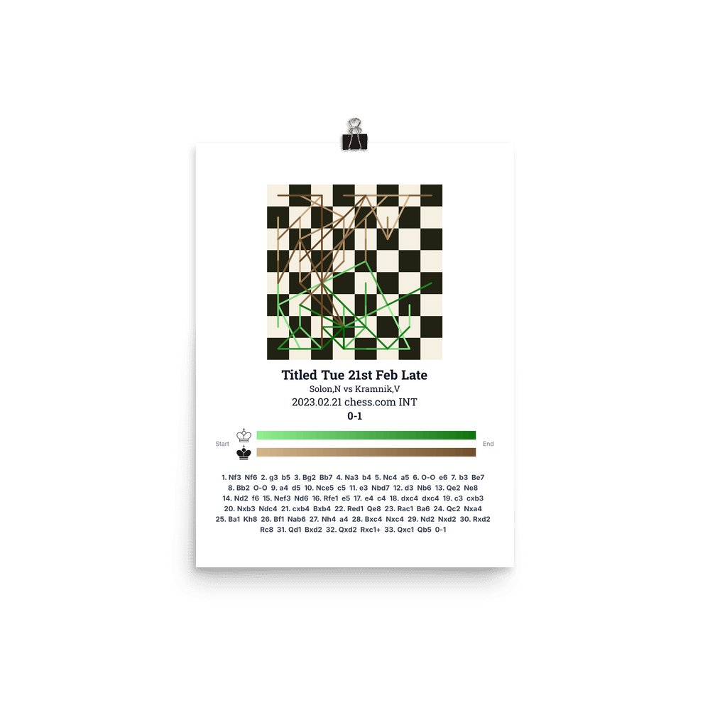 Museum-quality poster on thick, durable matte paper. A sharp, clean look for any chess visualisation.