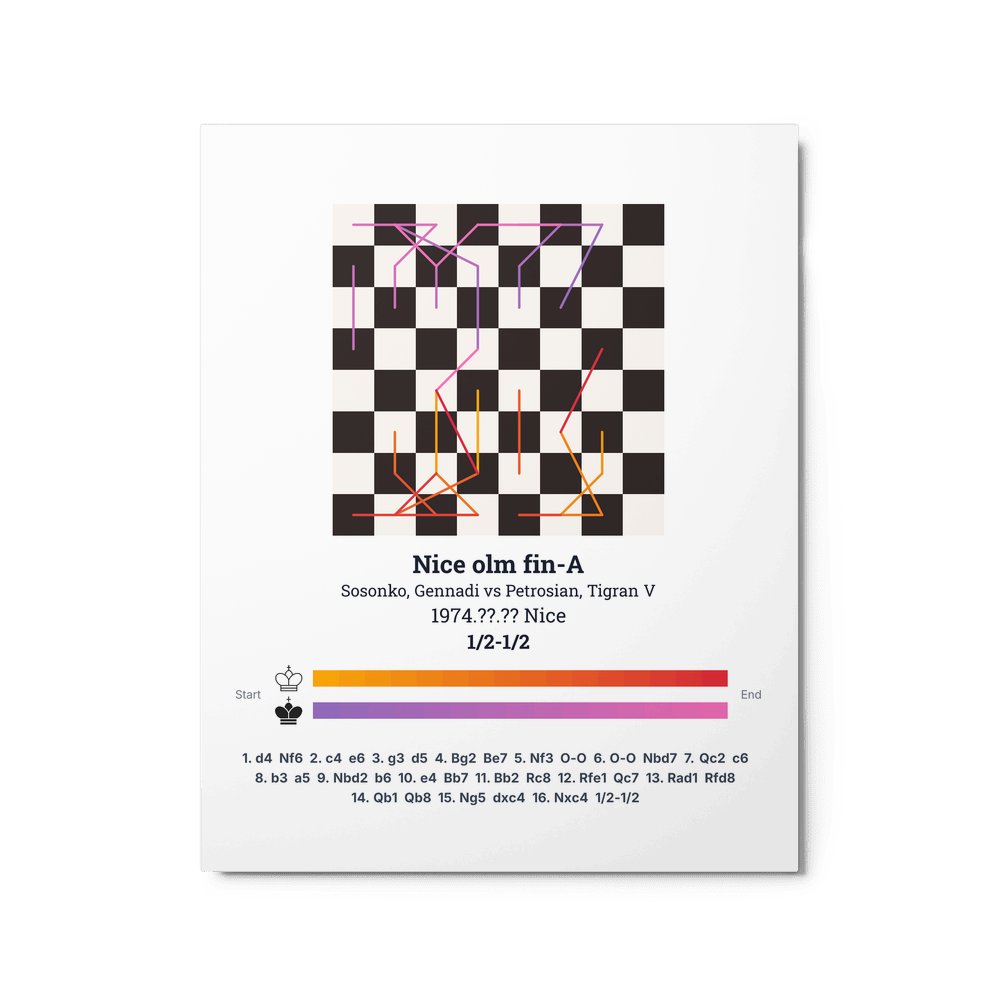 Museum-quality poster on thick, durable matte paper. A sharp, clean look for any chess visualisation.