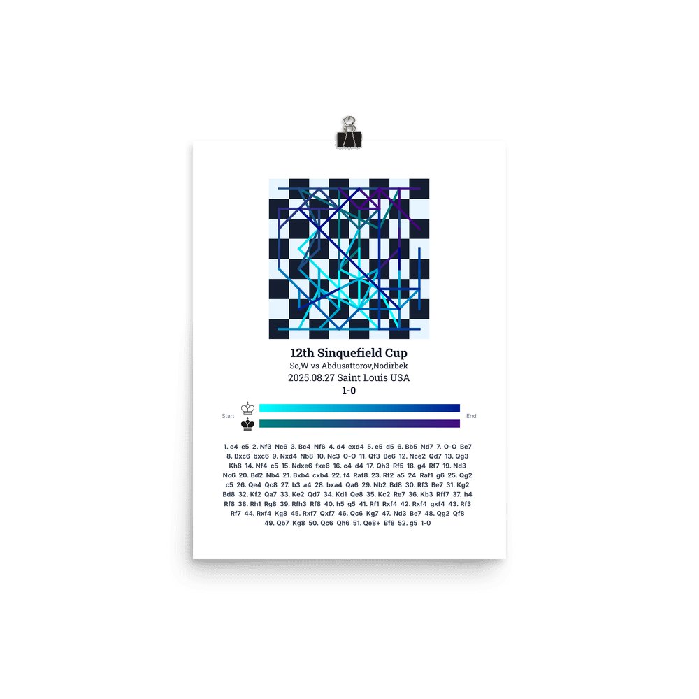 Museum-quality poster on thick, durable matte paper. A sharp, clean look for any chess visualisation.