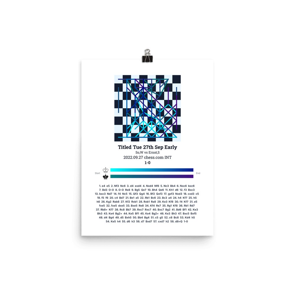 Museum-quality poster on thick, durable matte paper. A sharp, clean look for any chess visualisation.