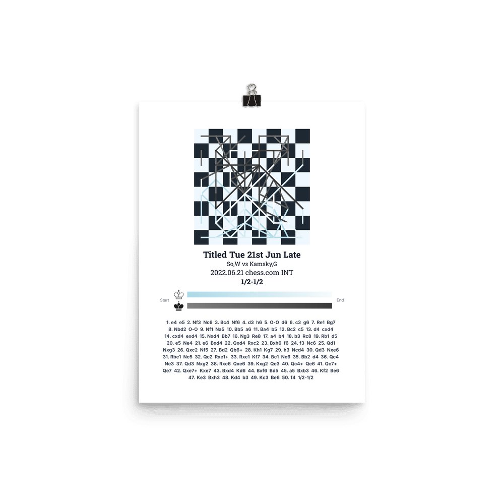 Museum-quality poster on thick, durable matte paper. A sharp, clean look for any chess visualisation.