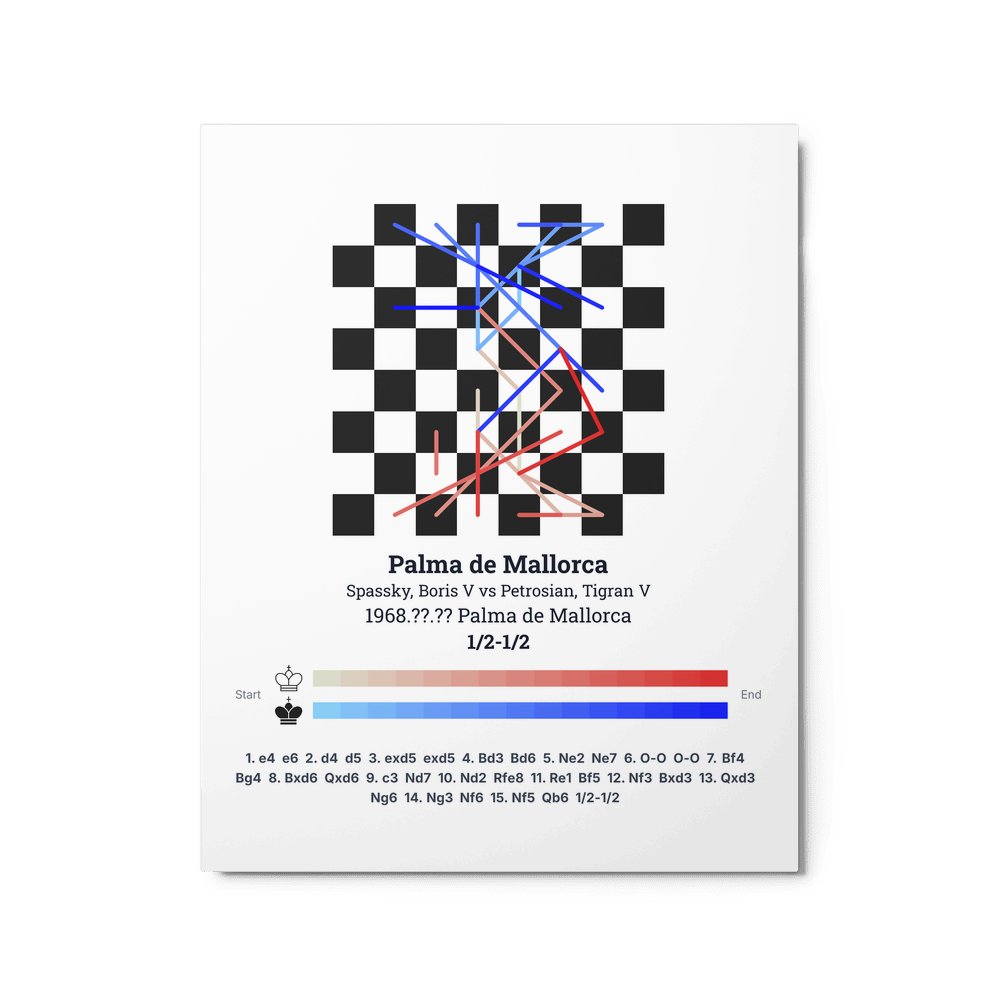 Museum-quality poster on thick, durable matte paper. A sharp, clean look for any chess visualisation.