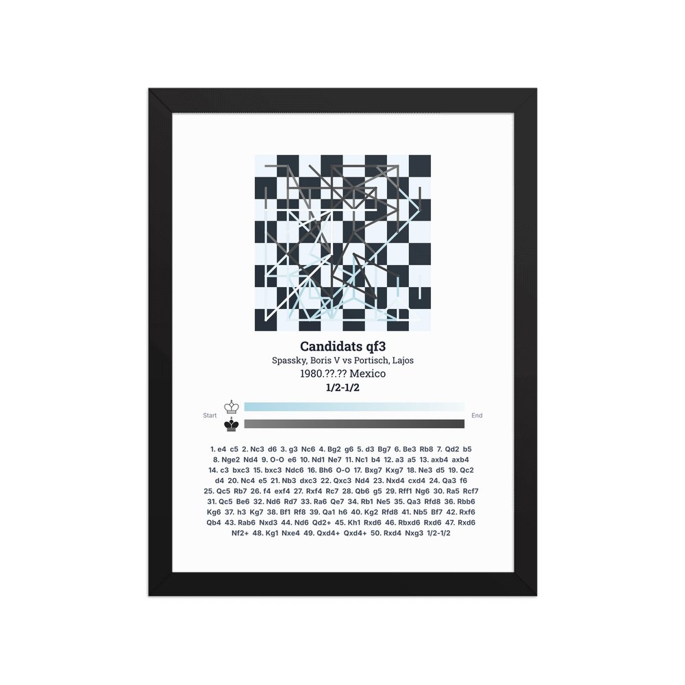 Museum-quality poster on thick, durable matte paper. A sharp, clean look for any chess visualisation.