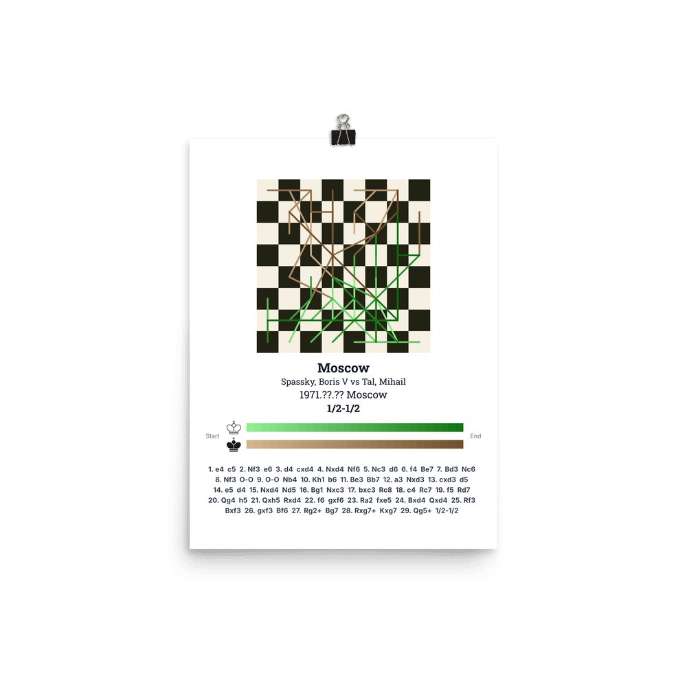 Museum-quality poster on thick, durable matte paper. A sharp, clean look for any chess visualisation.