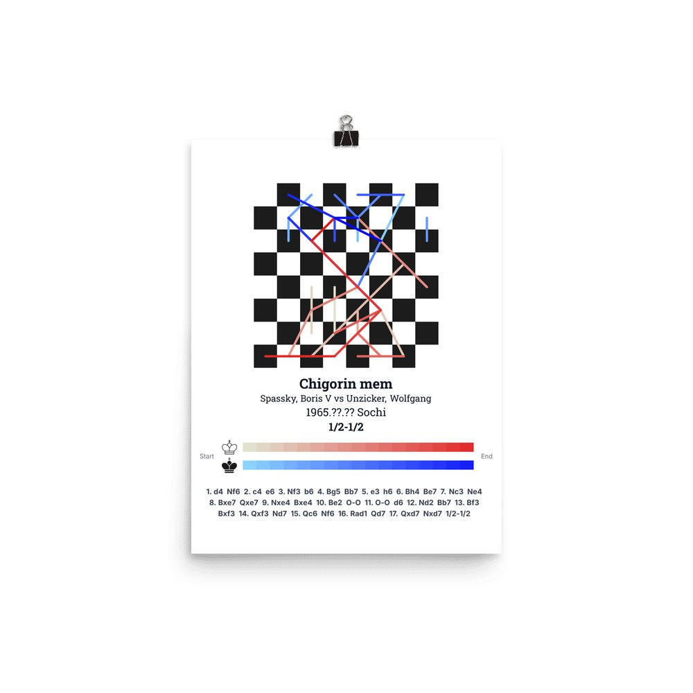 Museum-quality poster on thick, durable matte paper. A sharp, clean look for any chess visualisation.