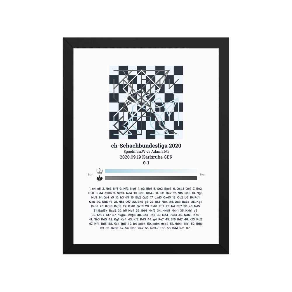 Museum-quality poster on thick, durable matte paper. A sharp, clean look for any chess visualisation.