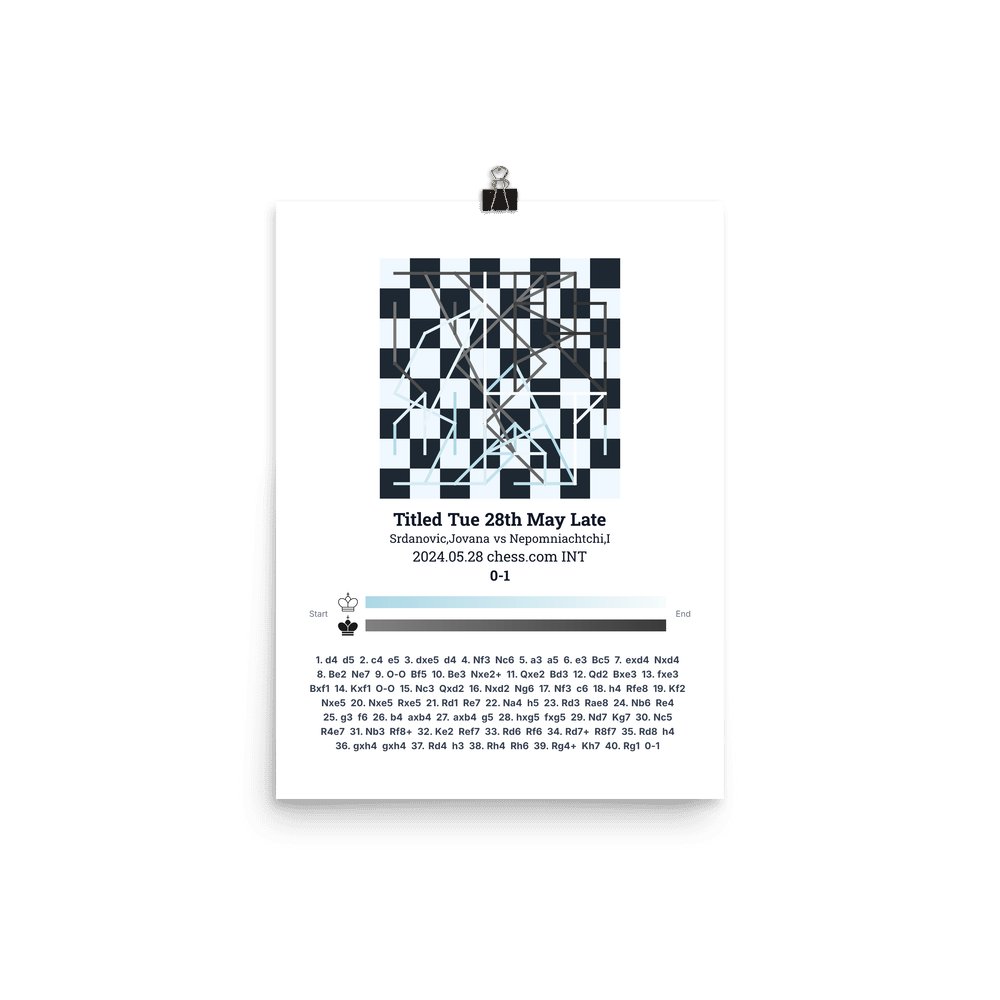 Museum-quality poster on thick, durable matte paper. A sharp, clean look for any chess visualisation.