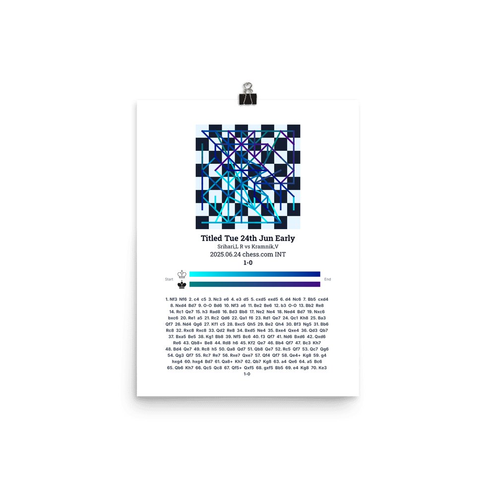 Museum-quality poster on thick, durable matte paper. A sharp, clean look for any chess visualisation.