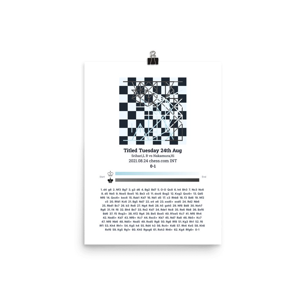 Museum-quality poster on thick, durable matte paper. A sharp, clean look for any chess visualisation.