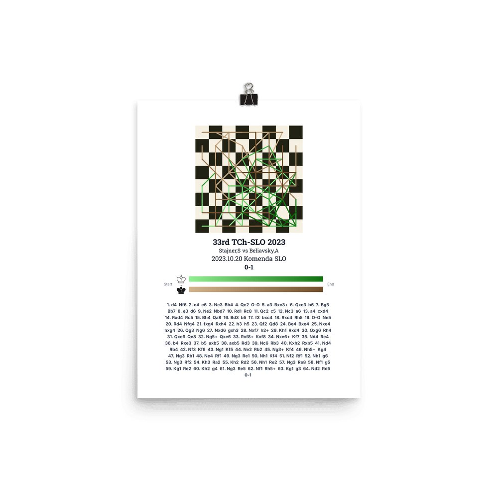 Museum-quality poster on thick, durable matte paper. A sharp, clean look for any chess visualisation.