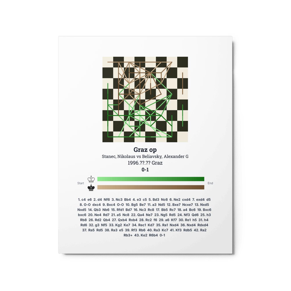 Museum-quality poster on thick, durable matte paper. A sharp, clean look for any chess visualisation.