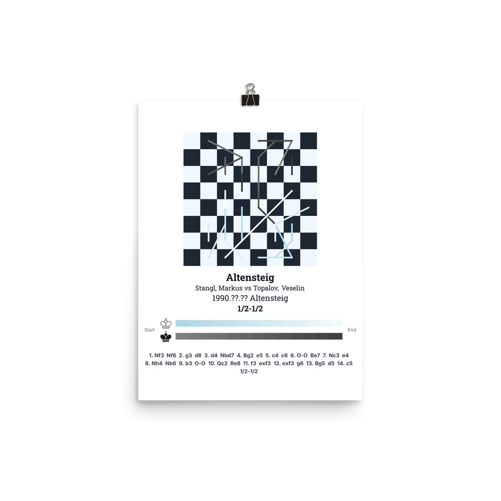 Museum-quality poster on thick, durable matte paper. A sharp, clean look for any chess visualisation.
