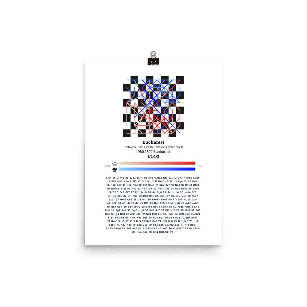 Museum-quality poster on thick, durable matte paper. A sharp, clean look for any chess visualisation.