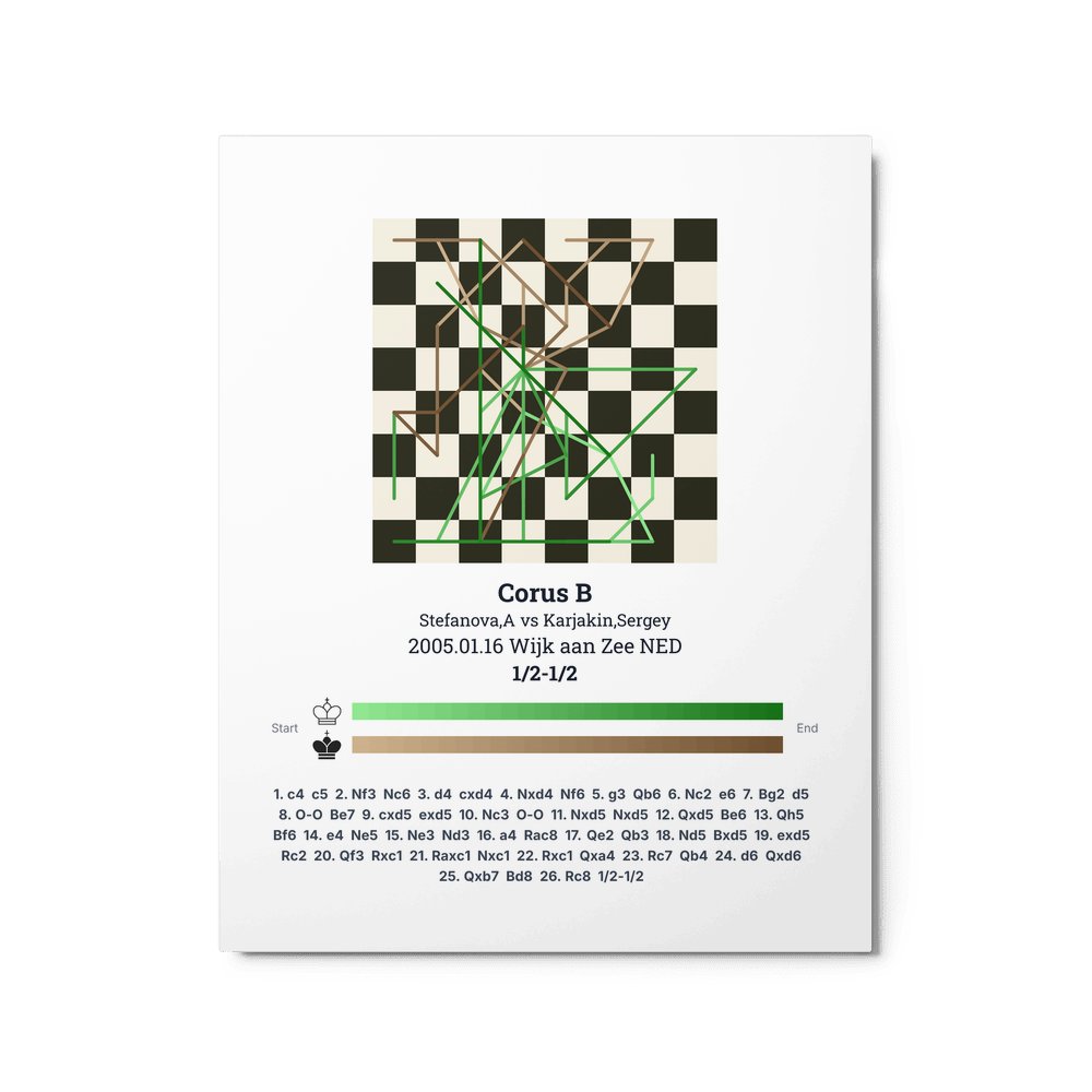 Museum-quality poster on thick, durable matte paper. A sharp, clean look for any chess visualisation.